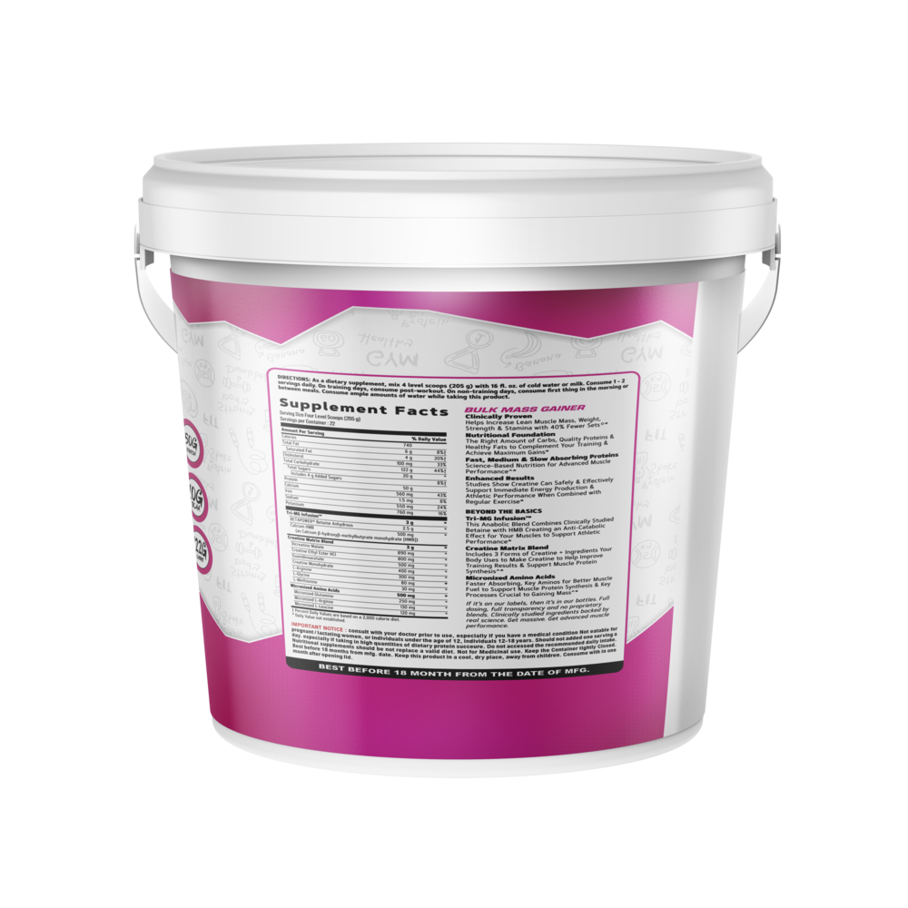 Bulk Mass Gainer is a powerful high-calorie formula specially designed for individuals who struggle to gain weight and build muscle mass. This advanced mass gainer provides the perfect combination of high-quality protein, complex carbohydrates, and essential nutrients to support muscle growth, strength, and recovery. It is an ideal supplement for bodybuilders, athletes, and fitness enthusiasts who want to increase their daily calorie intake and achieve a bigger, stronger physique.